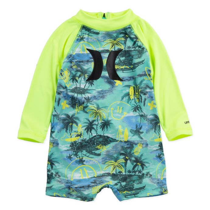 Baby Boy Hurley 1 Piece Long Sleeve Rashguard Swimsuit Upf 50 Topaz Mist 6m