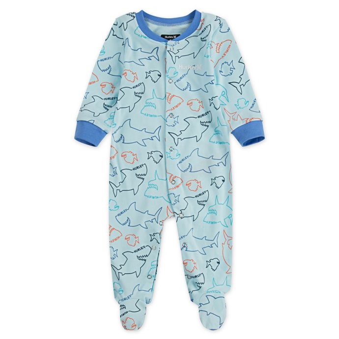 Hurley Shark Attack Footed Coverall In Teal Buybuy Baby