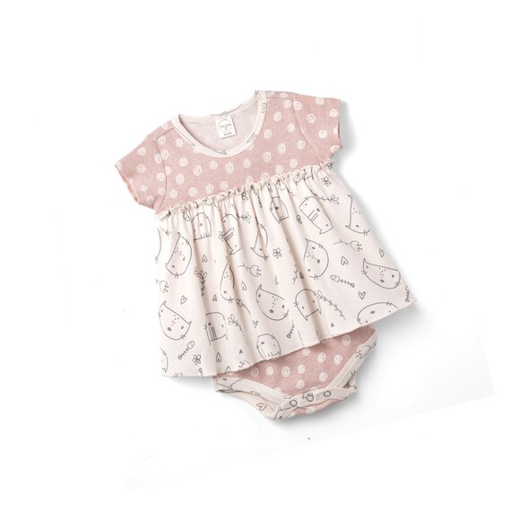 Baby Girl Pink Romper Bodysuit Newborn Girl Kitten Kitty Cat Outfit Baby Skirted Bodysuit Toddler Baby Clothing Summer Spring Tesa Babe