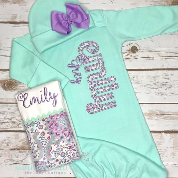 Baby Girl Coming Home Outfit Newborn Baby Clothes Custom Baby Clothes Boutique Baby Girl Clothes Mint Baby Gown