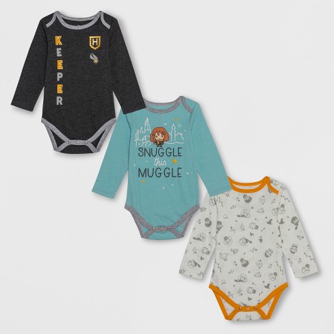 Baby Harry Potter 3pk Long Sleeve Bodysuits Gray White Blue Newborn