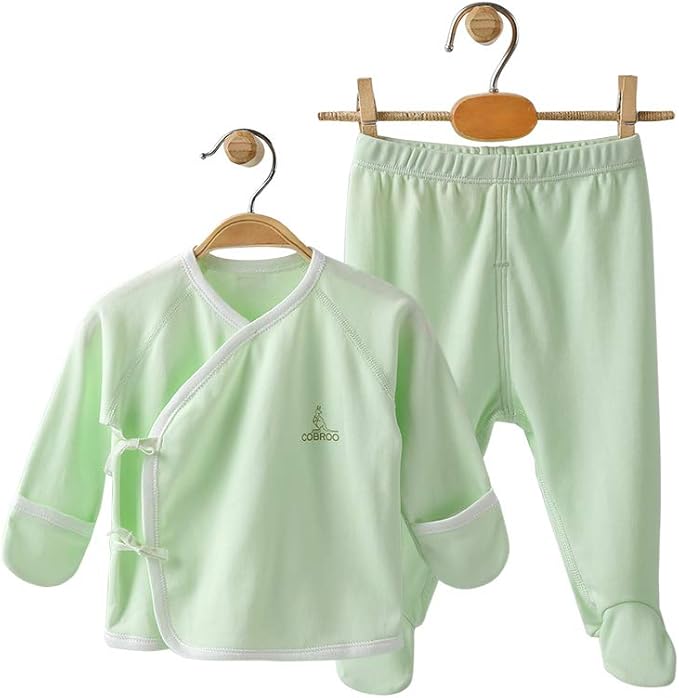 Cobroo 100 Cotton 2 Piece Baby Pajamas Set Long Sleeve Kimono Shirt And Essential Footed Pants Newborn 6 Months