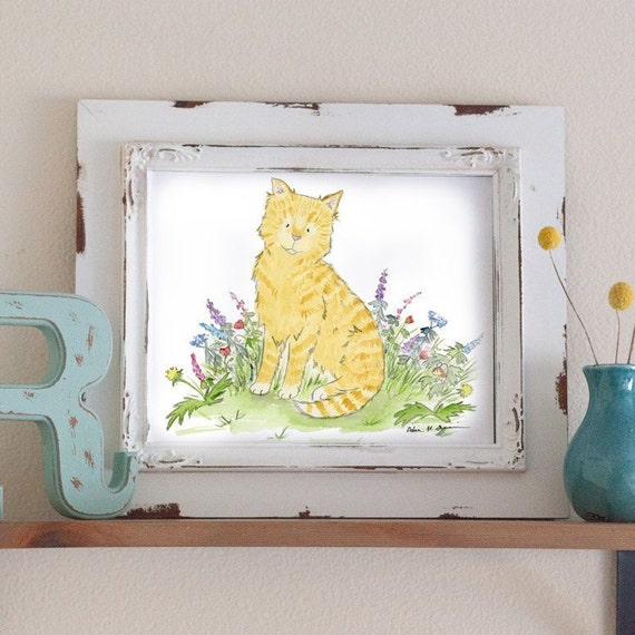 Watercolor Cat Art Ginger Cat Art Tabby Cat Print Kitten Art Kid S Wall Art Children S Cat Art Cat Nursery Art Nursery Decor New Baby