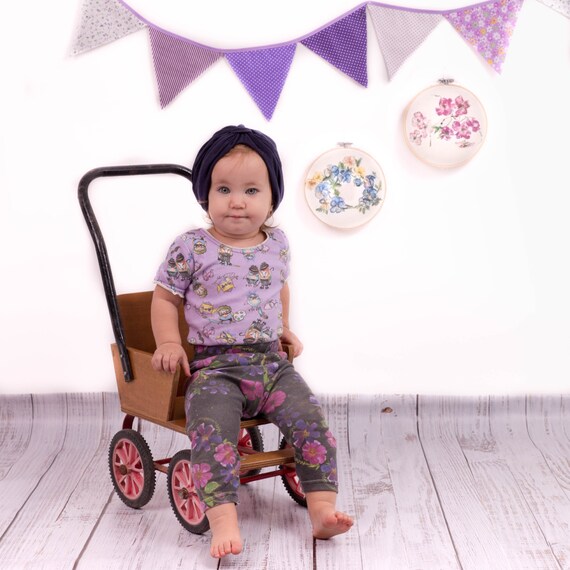Organic Cotton Black Floral Leggings For Newborn Infant And Toddler Girls Original Designer Baby Clothes Newborn Infant Toddler Pants
