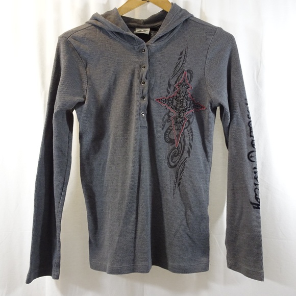 Harley Davidson Hooded Henley Bling Shirt Size M