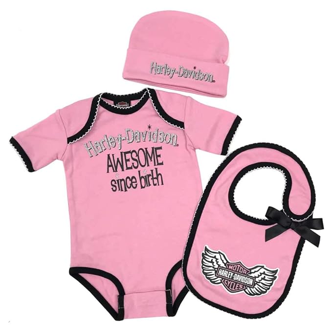 Harley Davidson Baby Girls Glitter Newborn Creeper Set W Hat Bib 2501917