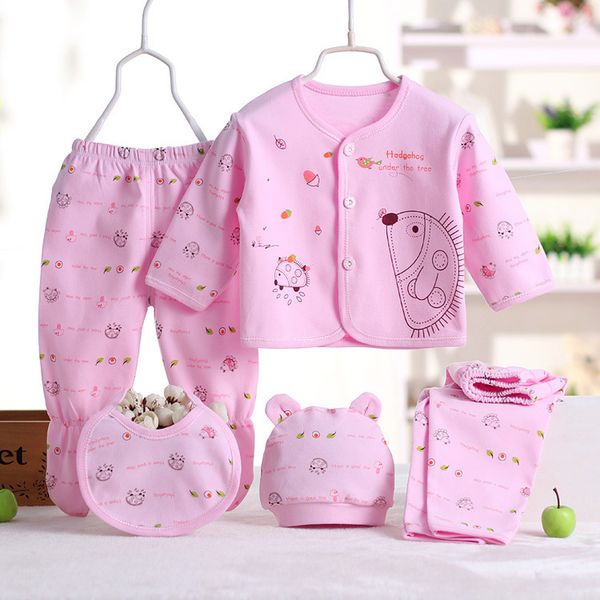 Us 5 9 20 Off Newborn 0 3 Months Baby Boys Girls 5 Pcs Clothing Set Cotton Cartoon Monk Tops Pants Bib Hats Infant Clothes In Clothing Sets From