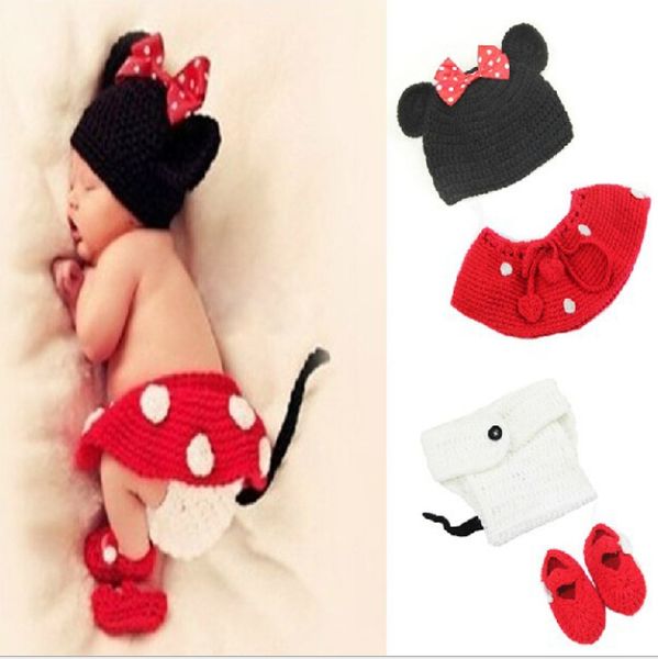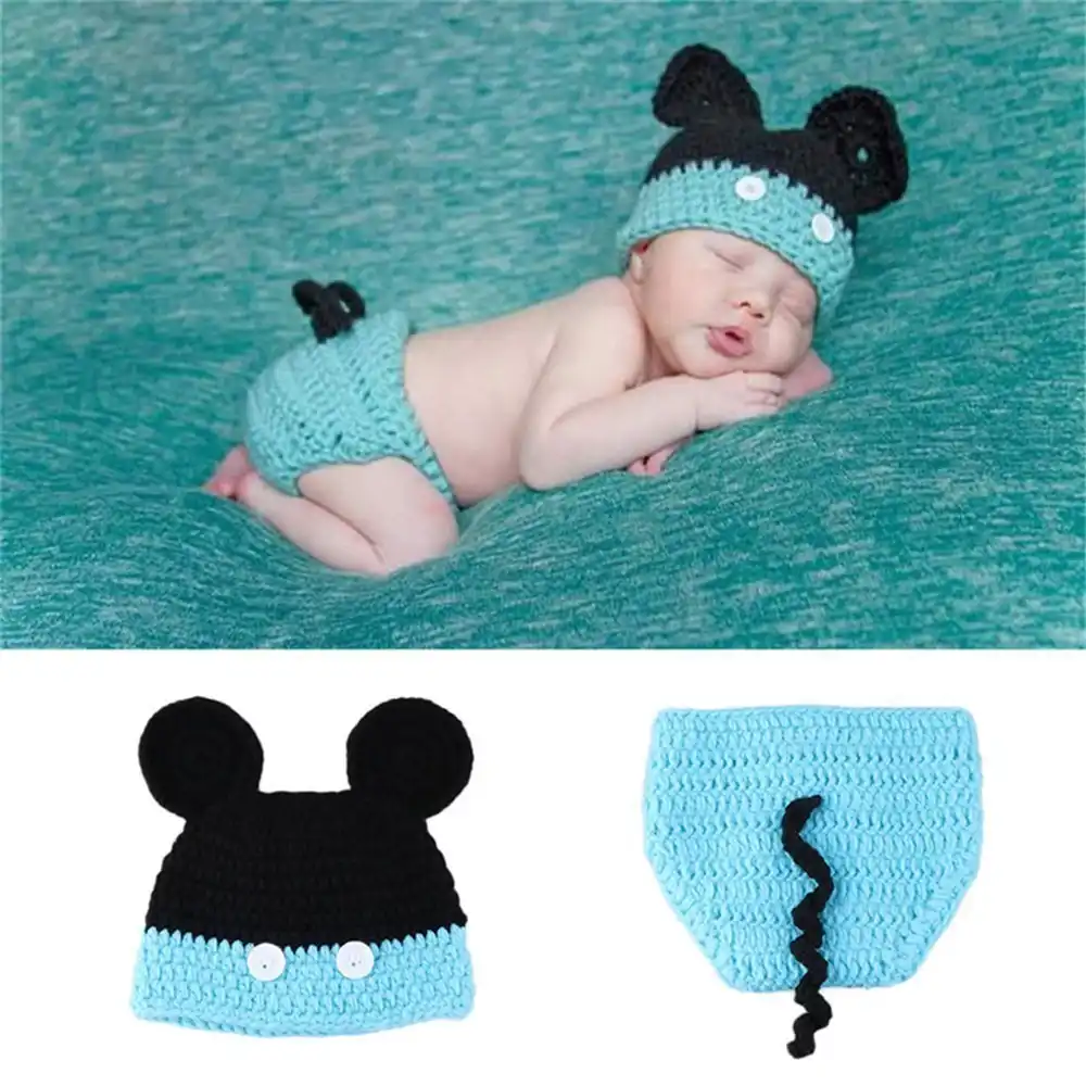 Newborn Photography Accessories Props Mickey Mouse Clothes Baby Crochet Hat And Diaper Set 0 4 Months For Boys And Girls Costume