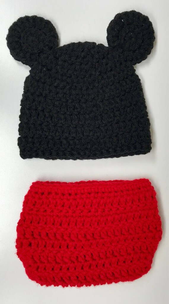 Newborn Mickey Mouse Inspired Outfit Mickey Mouse Hat Diaper Cover Baby Outfit Newborn Crochet Outfit Baby Pictures Photo Prop