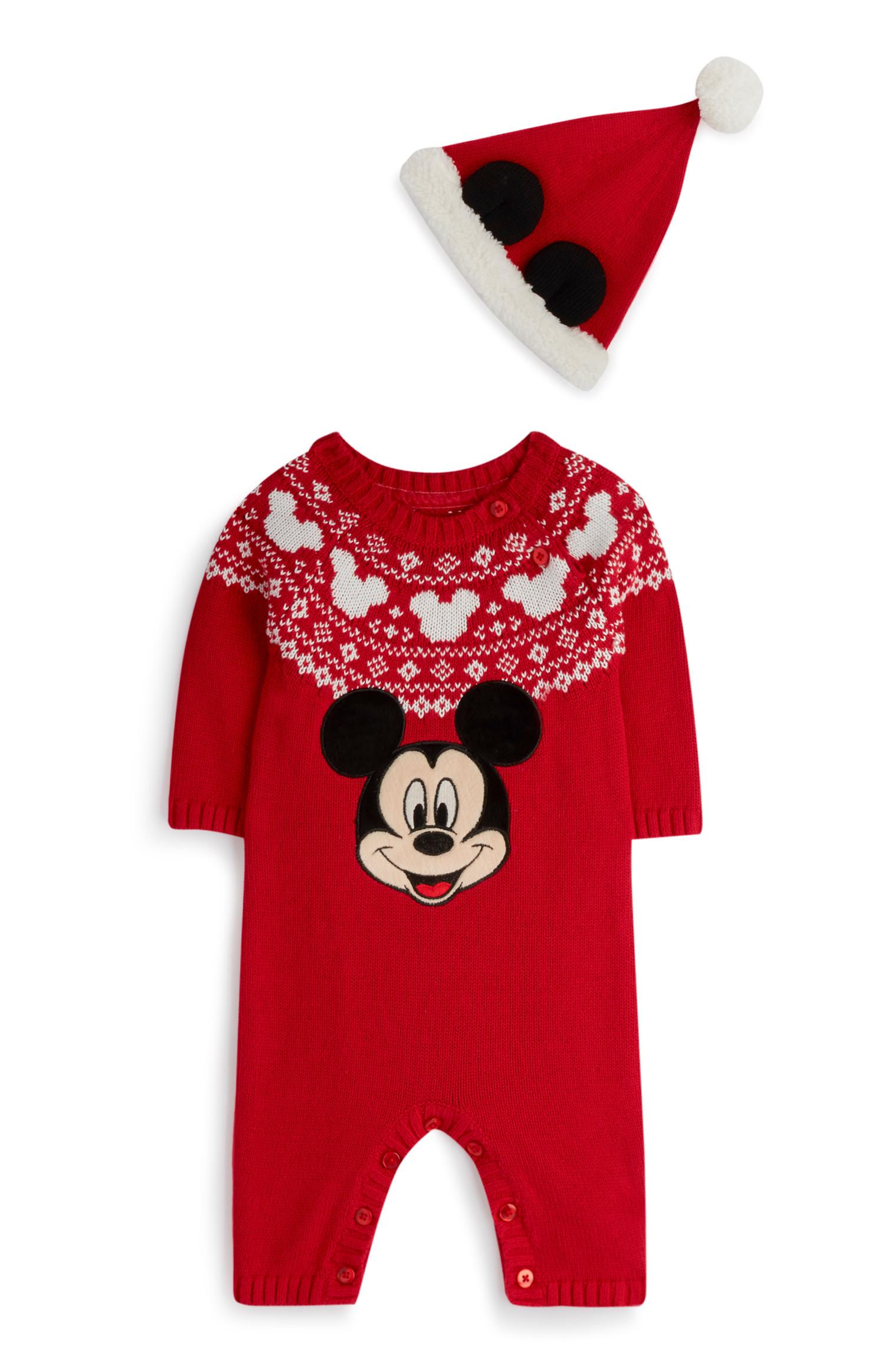 Newborn Red Mickey Mouse Sleepsuit And Hat Baby Basics