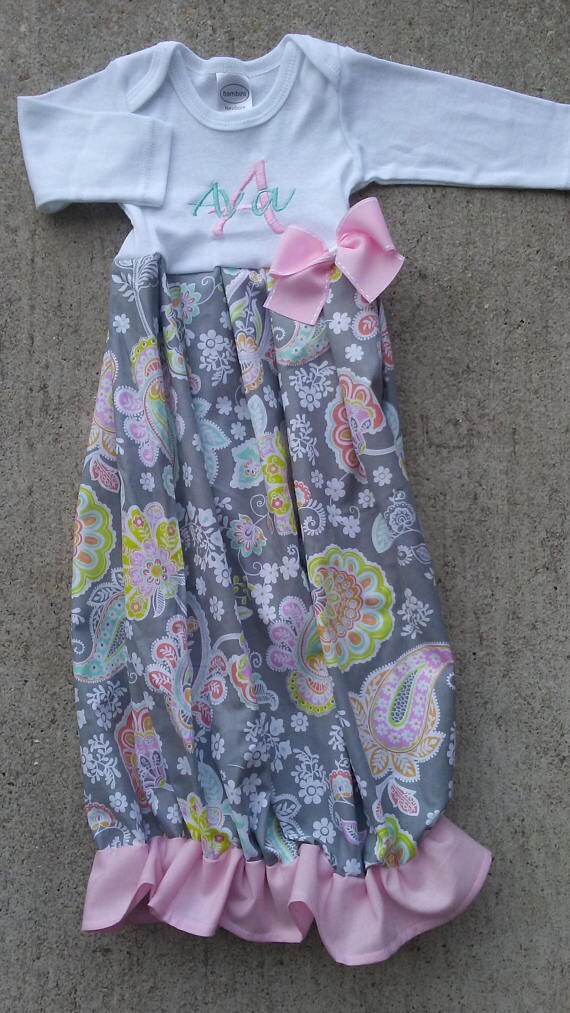 Personalized Baby Gift Girl Newborn Girl Coming Home Outfit Personalized Baby Girl Clothes Baby Clothes Infant Gown Baby Outfit Pink Gray