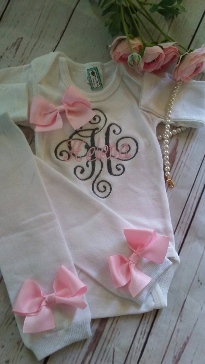 Monogrammed Baby Girl Coming Home Outfit Bodysuit Bow By
