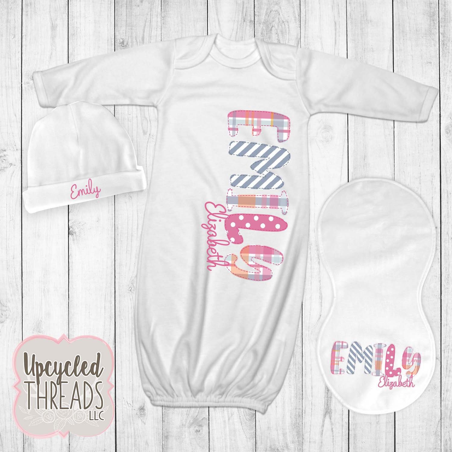 Personalized Baby Gown Baby Girl Coming Home Outfit Newborn Custom Made Monogrammed Baby Clothes