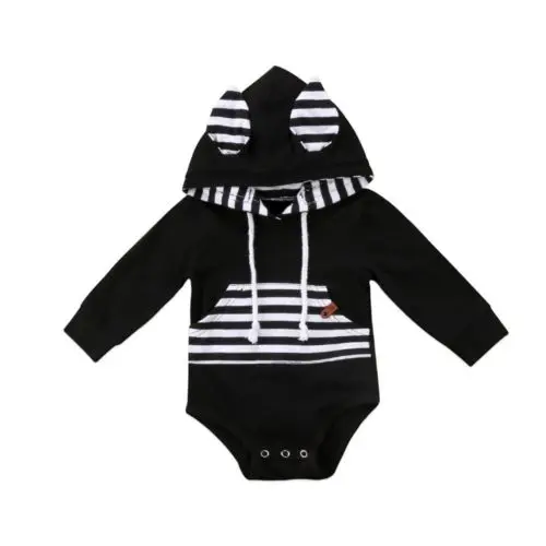 Us 5 7 20 Off Personalized Rabbit Ear Buha Clothing Newborn Hooded Romper Jumpsuit Kids Boy Striped Autumn Winter Clothing Girl Clothes In Rompers