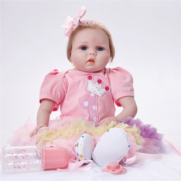 Lifelike Princess Girl Reborn Doll 22 Inch Realistic Silicone Real Touch Newborn Babies Toy With Clothes Kids Birthday Xmas Gift Doll Clothes For 18