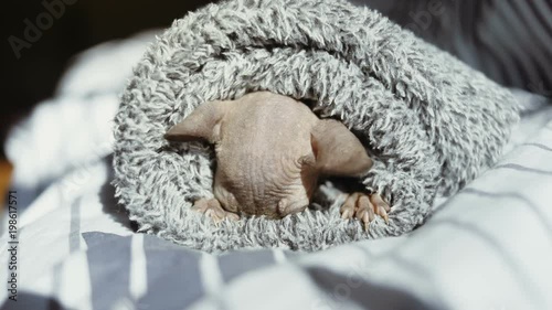 Little Newborn Kitten Of Breed The Canadian Sphynx Wrapped