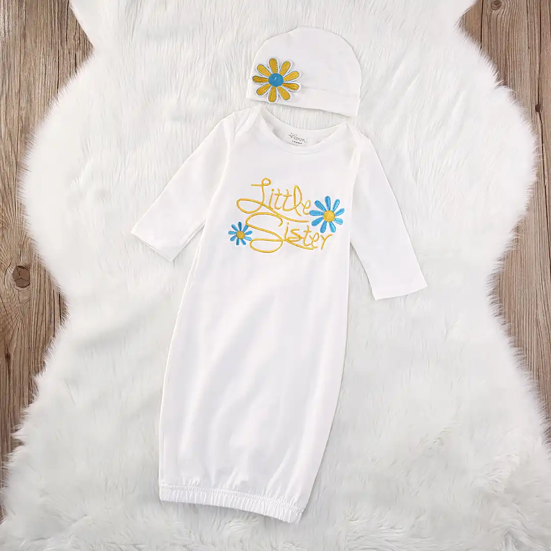 Cute Little Sister Baby Girl Clothes Newborn Take Home Outfit Baby Gown Robe Hat Set