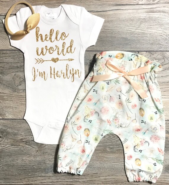 Janie Hello World Newborn Outfit Hello World Bodysuit Coming Home Outfit Girl