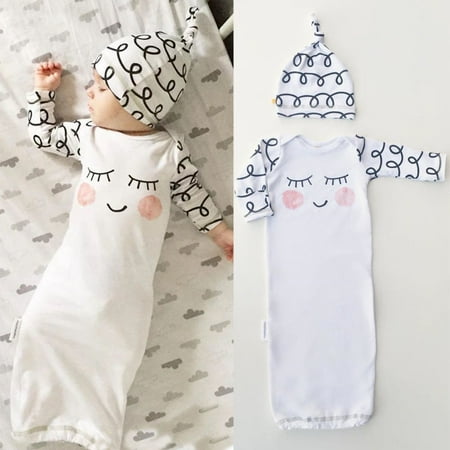 Us 4 39 25 Off Sleepy Eyes Rosy Cheeks Newborn Take Home Outfit Baby Gown And Hat Infant Gift Babys Fashion Clothe Baby Clothing Sets In Nightgowns