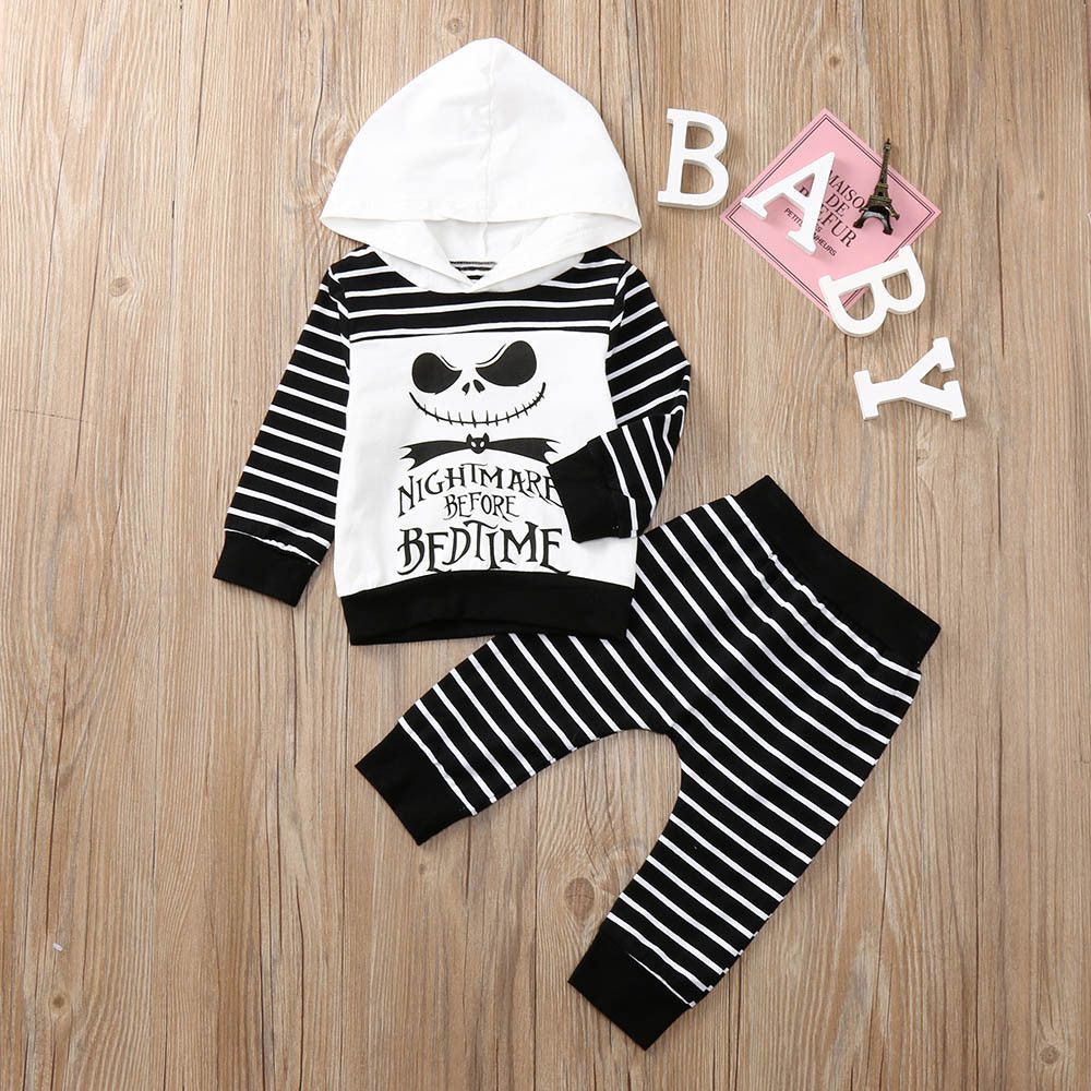 2019 Good Quality Newborn Kids Winter Clothes Baby Boy Clothing Set Skull Striped Tops Hooded Pants Halloween Outfits Set Conjunto From Nextbest02