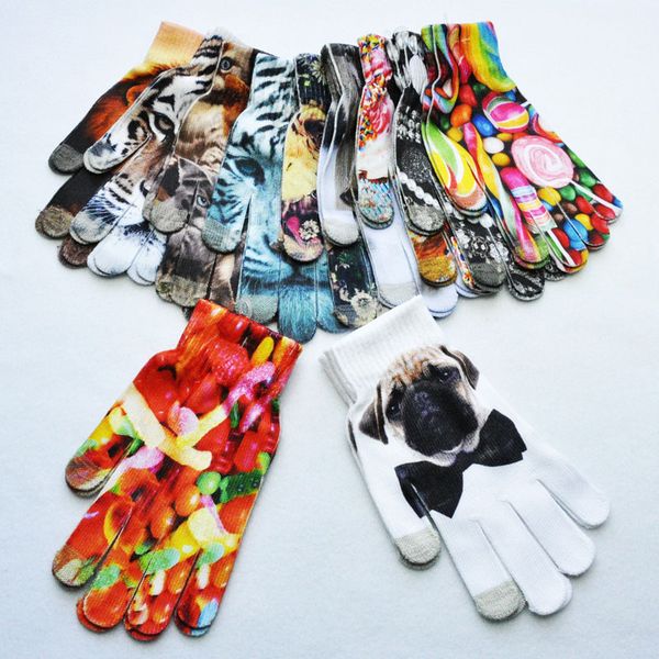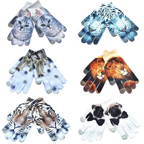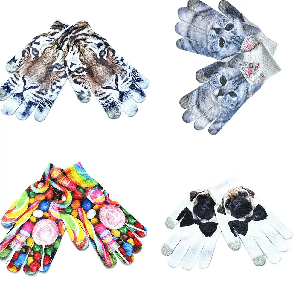Us 1 71 13 Off Winter Gloves Printed Tiger Cat Dog Sugar Knitted Touch Screen Mittens Gloves Apparel Accessories In Men S Gloves From Apparel