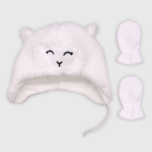 Baby Girls Hat And Glove Set Cat Jack White 0 6m