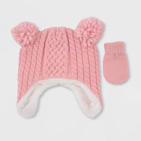 Baby Girls Hat And Glove Set Cat Jack Pink Newborn