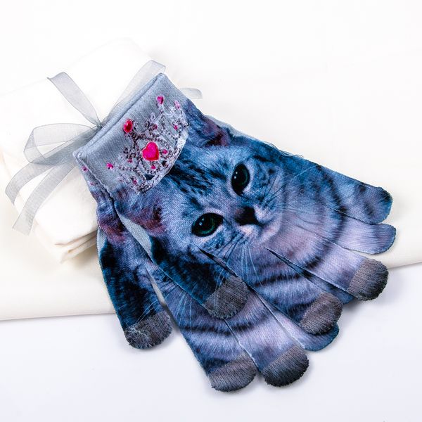 Unisex 3d Cat Printand 8 Other Designs Touch Screen Gloves