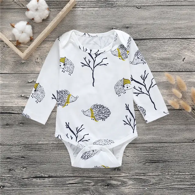 Baby Boy Romper Newborn Girl Cotton Clothes Infant Summer Cartoon Hedgehog Playsuit Long Sleeve Unisex Jumpsuit Toddler Clothing