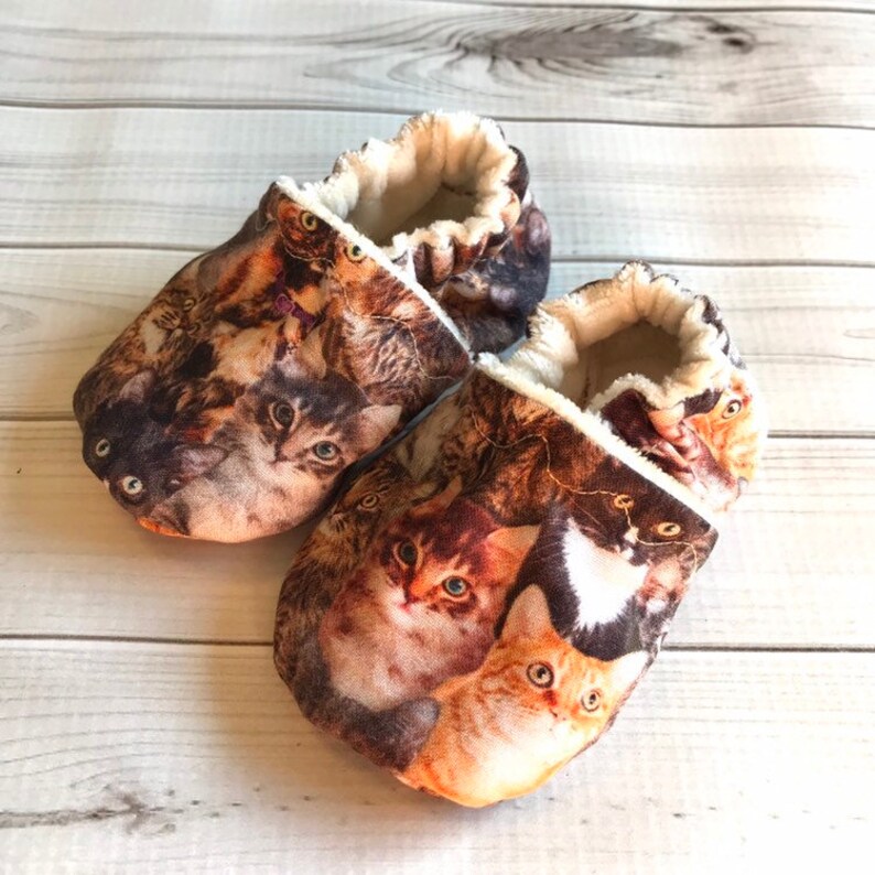 Cat Baby Shoes Kitten Crazy Cat Lady Organic Crib Booties Custom Size Preemie Newborn 0 3 6 9 12 18 24 Months Girl Boy Feline