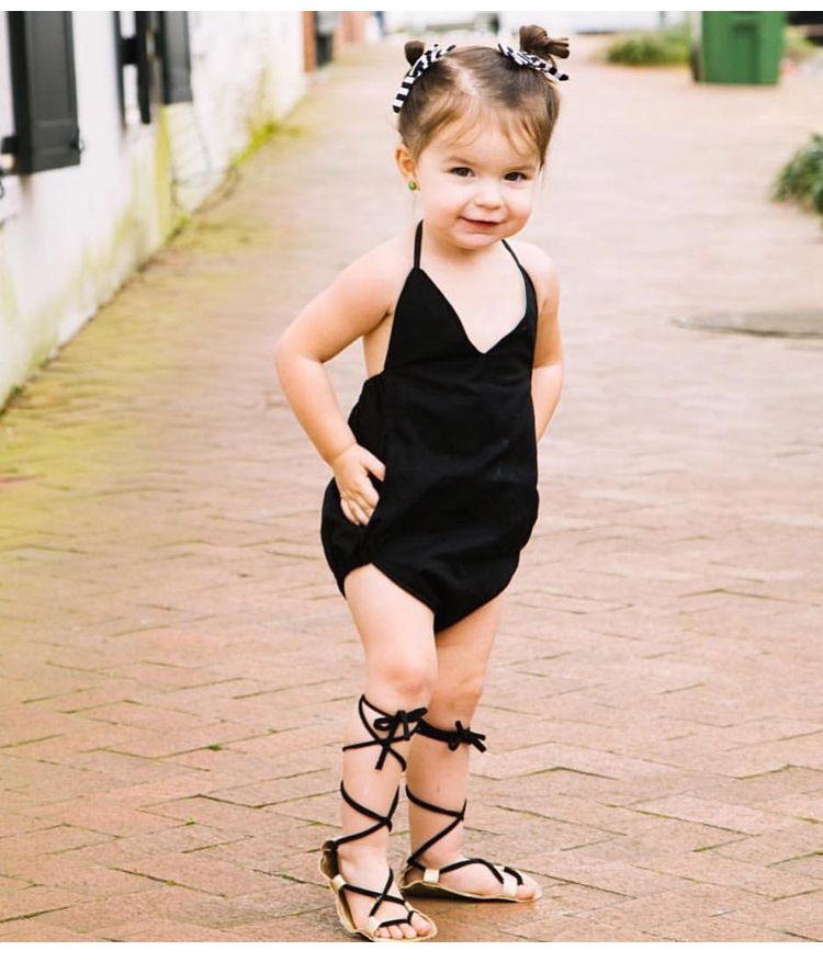 2019 2018 New Baby Girl Clothes Fashion Newborn Baby Romper Cotton Black Sleeveless Backless Jumpsuit Summer Infant Baby Clothing Bodysuit 0 24m From