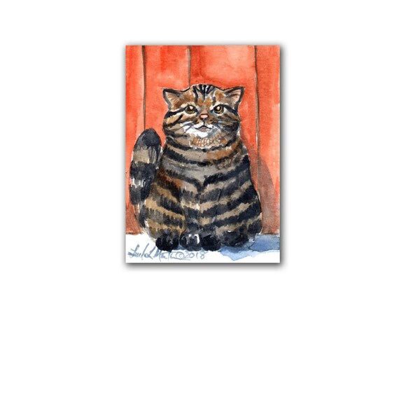 Brown Tabby Cat Kitten Llmartin Original Aceo Watercolor Original Nursery Baby First Time Mom Kitten