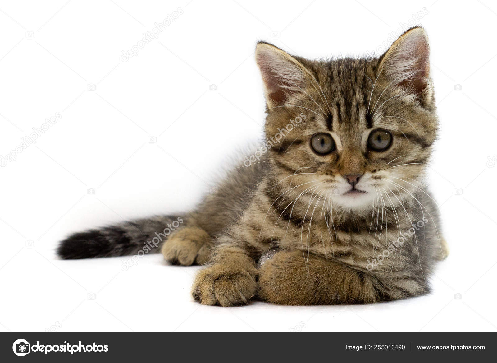 Striped Brown Little Kitten Tabby Cat Baby Stock Photo