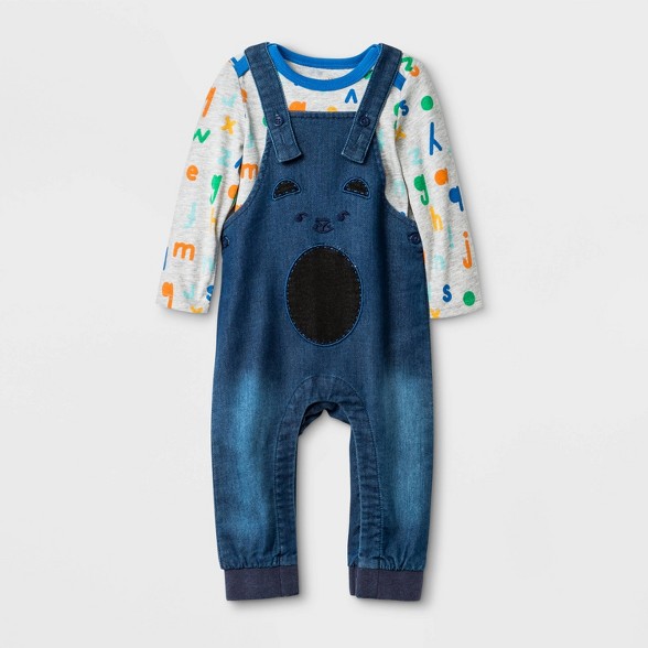 Baby Boys Long Sleeve Bodysuit Top And Denim Critter Overall Bottom Set Cat Jack Blue Gray Newborn