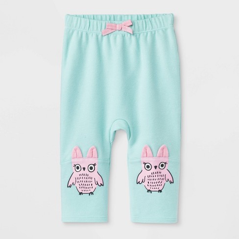 Baby Girls Critter Owl Knees Jogger Pants Cat Jack Aqua
