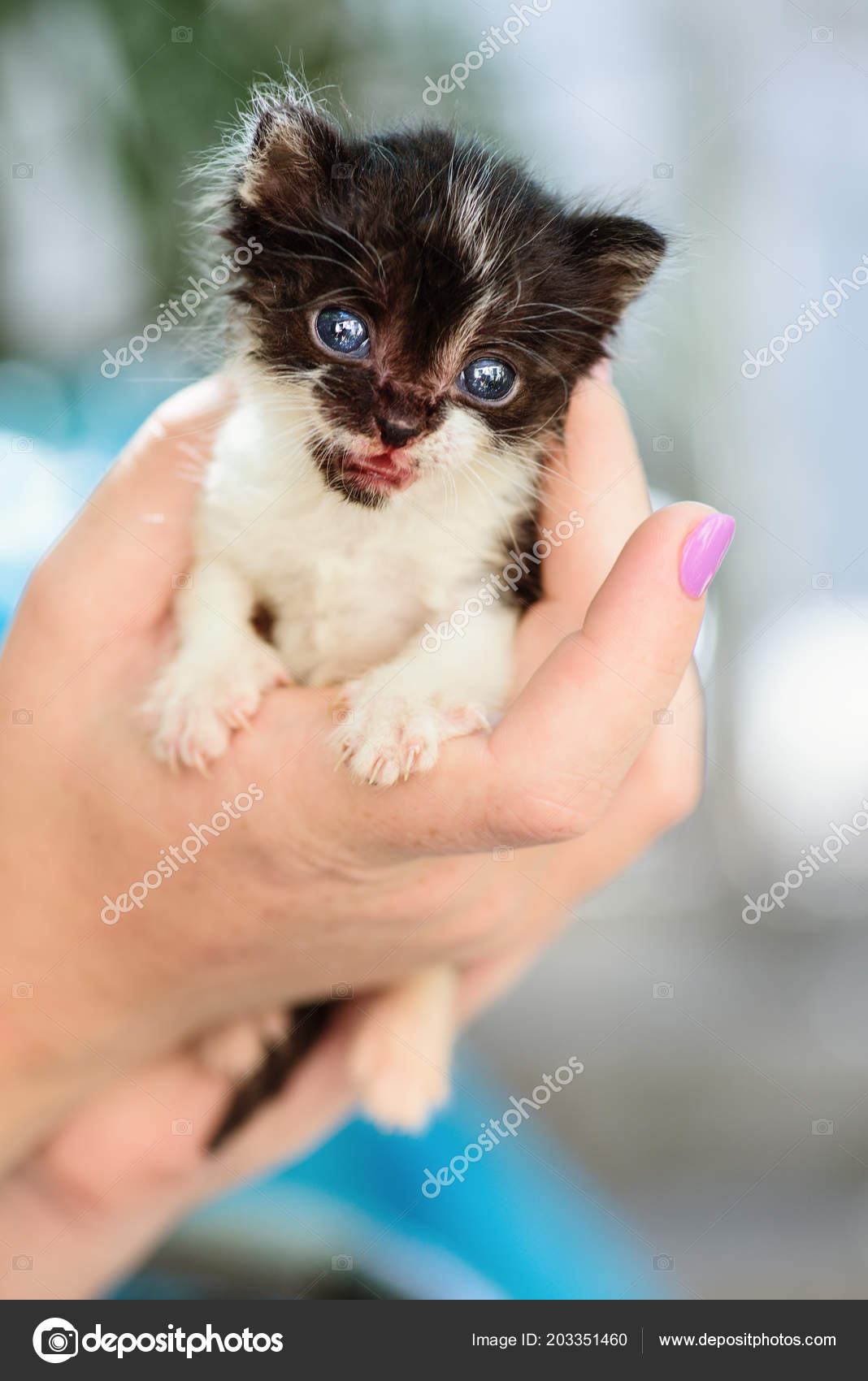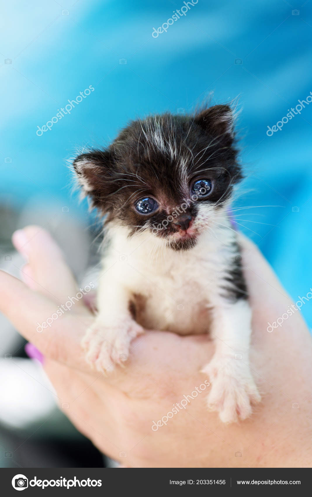 Newborn Black White Sweet Kitten Hands Stock Photo