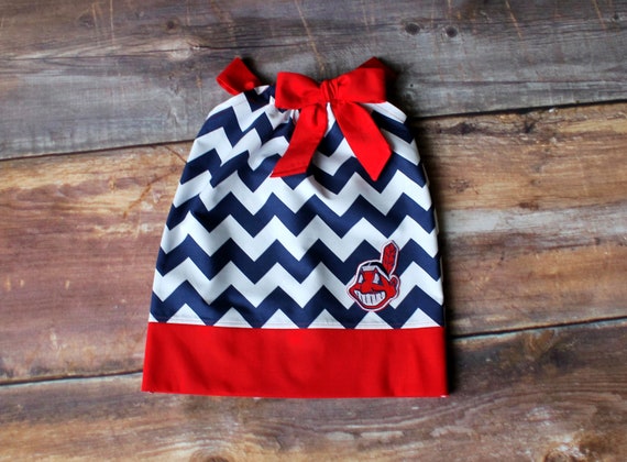 Cleveland Indians Dress Newborn Baby Girls Toddler Child Infant Cleveland Indians Outfit Pillowcase Dress Red Navy Blue Baseball Mlb