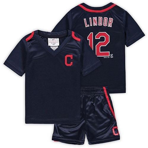 Newborn Infant Majestic Francisco Lindor Navy Cleveland