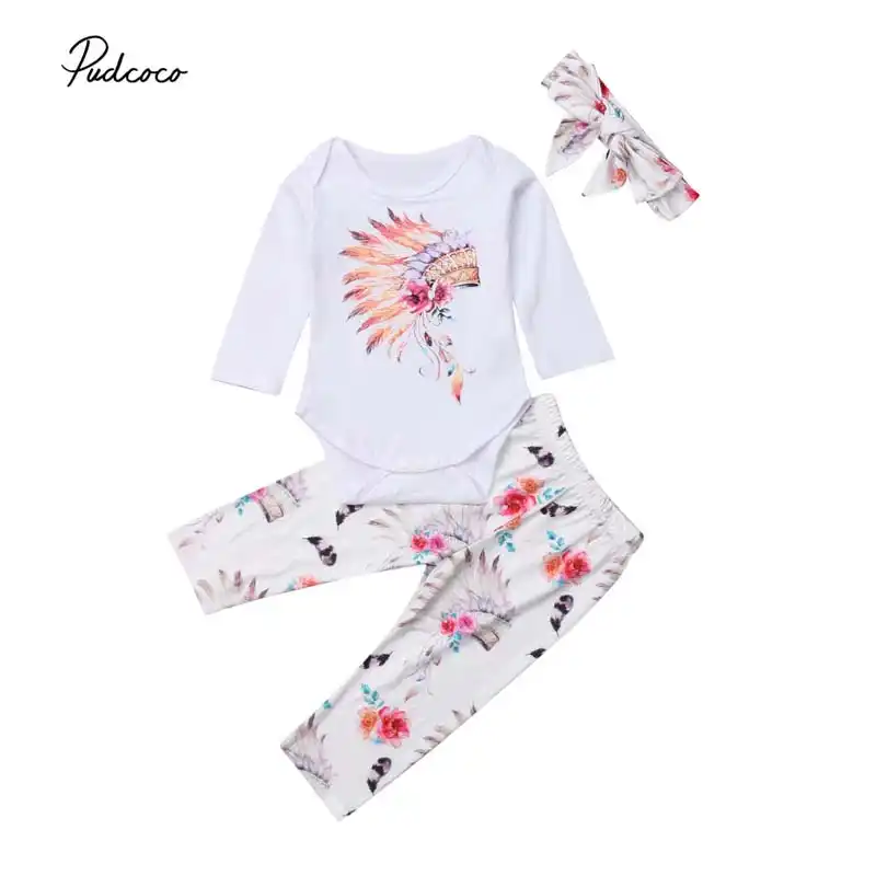 2018 Floral Girls 3pcs Newborn Infant Baby Girl Outfits Clothes Indian Print Bodysuit Floral Pants Leggings Autumnn Clothing Set
