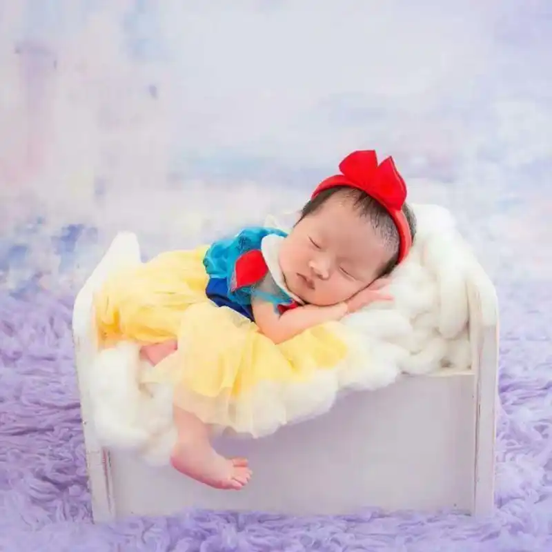 Newborn Photography Cartoon Clothes Props Infant Baby Photoshoot Snow White Headband Princess Dress Costume Fotografia Accessory