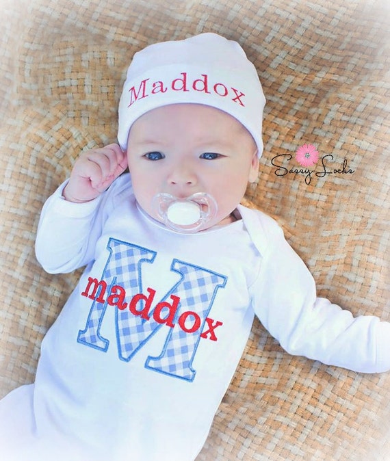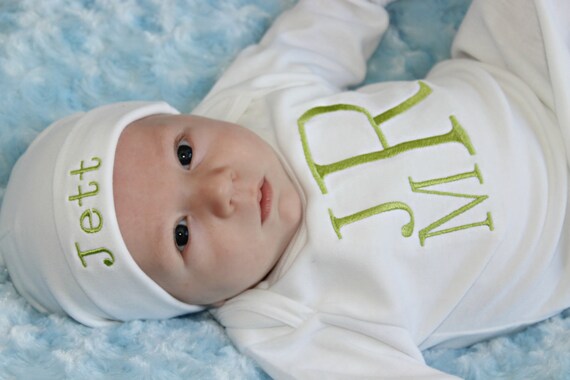 Newborn Boy Gown Clothes Personalized Baby Boy Take Home Outfit Monogram Baby Boy Newborn Preemie Baby Clothes Home Outfit Twins Baby Gift