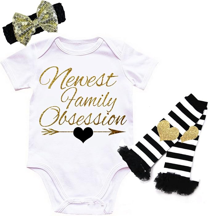 Black And Gold Glitter 3 Piece Outfit To Bring Baby Girl Home In