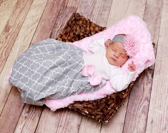 Theposhlayette Newborn Baby Girl Coming Home Outfit Personalized Layette Gown With Beanie Baby Girl Shower Gifts White Pink