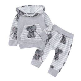 New Fashion Newborn Baby Girls Boy Unisex Cotton Animals Print Hooded Tops Pants Tracksuit Trousers Outfits Clothes Sets 3g23