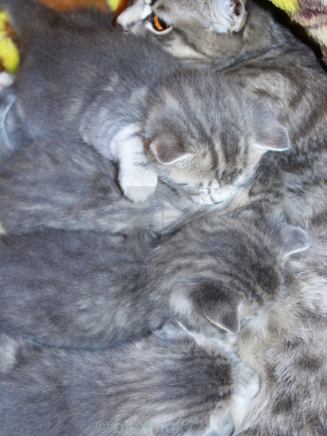Grey Cat Nursing Her Newborn Kittens Buy This Stock Photo