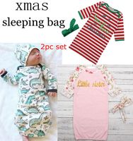 Xmas Ins Infant Baby Striped Dinosaur Sleeping Bags Swaddle Baby Boys Girls Muslin Blanket Headband Newborn Baby Soft Cotton Sleep Sack