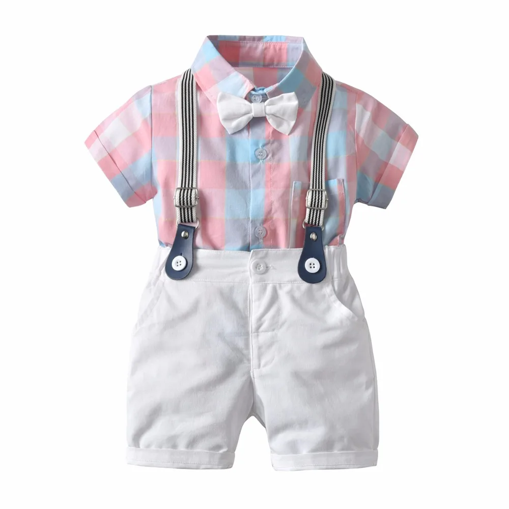 Us 10 26 46 Off Clothing For Boys Baby Bow Set Birthday Formal Suit Summer Newborn Baby Clothes Set Blue Shirt Top Suspender Pants Outfits In