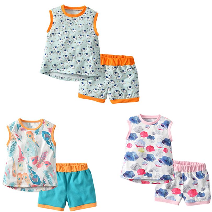 2019 Summer Baby Clothes Set Newborn Baby Digital Printing Vest Top Shorts Boy Girl Clothes Set Roupa De Bebes