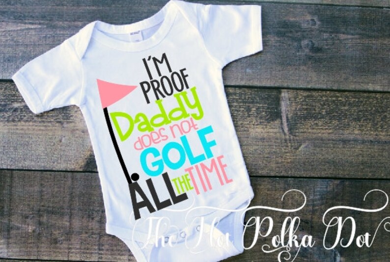 Infant Girl I M Proof Daddy Does Not Golf All The Time White Infant Bodysuit Cute Baby Sayings Makes Great Baby Shower Gift