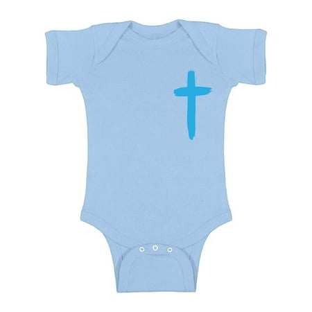 Awkward Styles Blue Cross Baby Bodysuit Jesus Short Sleeve Tops For Newborn Baby Christian Cross Clothes For Baby Boys Christian Bodysuits For Baby